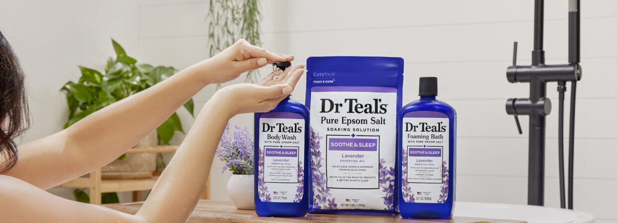 Dr Teal’s Soaking Solution combines Pure Epsom Salt, which has long been known to revitalize tired, achy muscles, with luxurious essential oils to soothe the senses and help provide relief from stress. Lavender essential oil soothes & calms the mind, helping to promote a better night’s sleep.