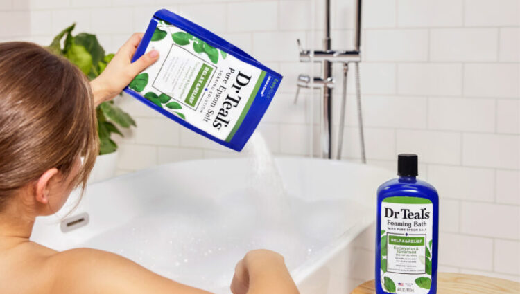 Pour at least 2 cups of Dr Teal’s Epsom Salt under warm, running bath water. Soak for 20 minutes, and let the rich minerals soak away discomfort.